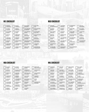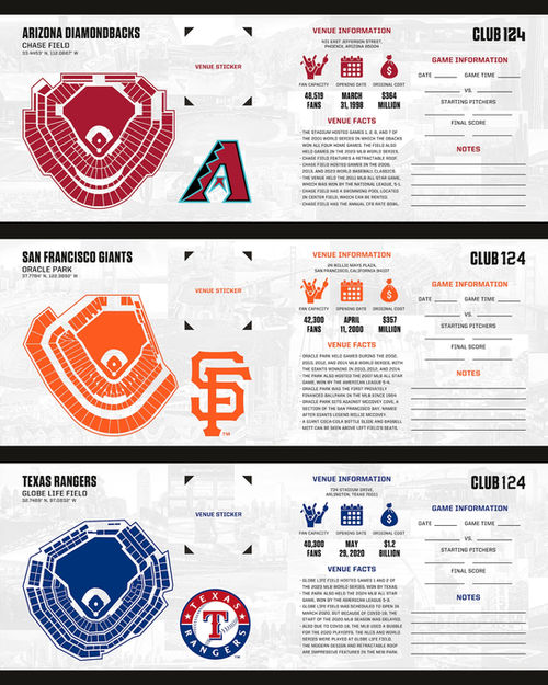 Professional sports teams in the United States in the MLB, NFL, NBA, and NHL have had long histories of historic venues. Fans of the sports travel to support their teams and go to games all across the country and the World to see new places and attend new arenas, fields, ballparks, and stadiums. The CLUB124 book is a physical record and product for the fans so that they can keep up with their travels and have a reason to travel, and see new places and venues. This book will help families and groups of friends to see more, experience more, and travel more all through the wide world of sports.